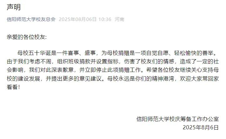 发布日期:2025-10-05 12:07 点击次数:1888月6日赌钱赚钱软件官方登录,据“信阳师范大学学友总会”账号音信,信阳师范大学校庆筹划责任办公室发布声明: