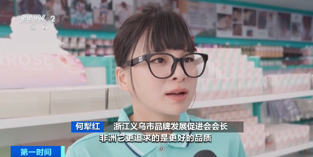 浙江义乌市品牌发展促进会会长何犁红:许多东谈主认为非洲就要作念低廉低端的产物,其实不是的,非洲追求更好的品性、更好的产物,是以咱们来这里作念非洲当地的品牌,我以为抱团不错让我的品牌更快速地落地。